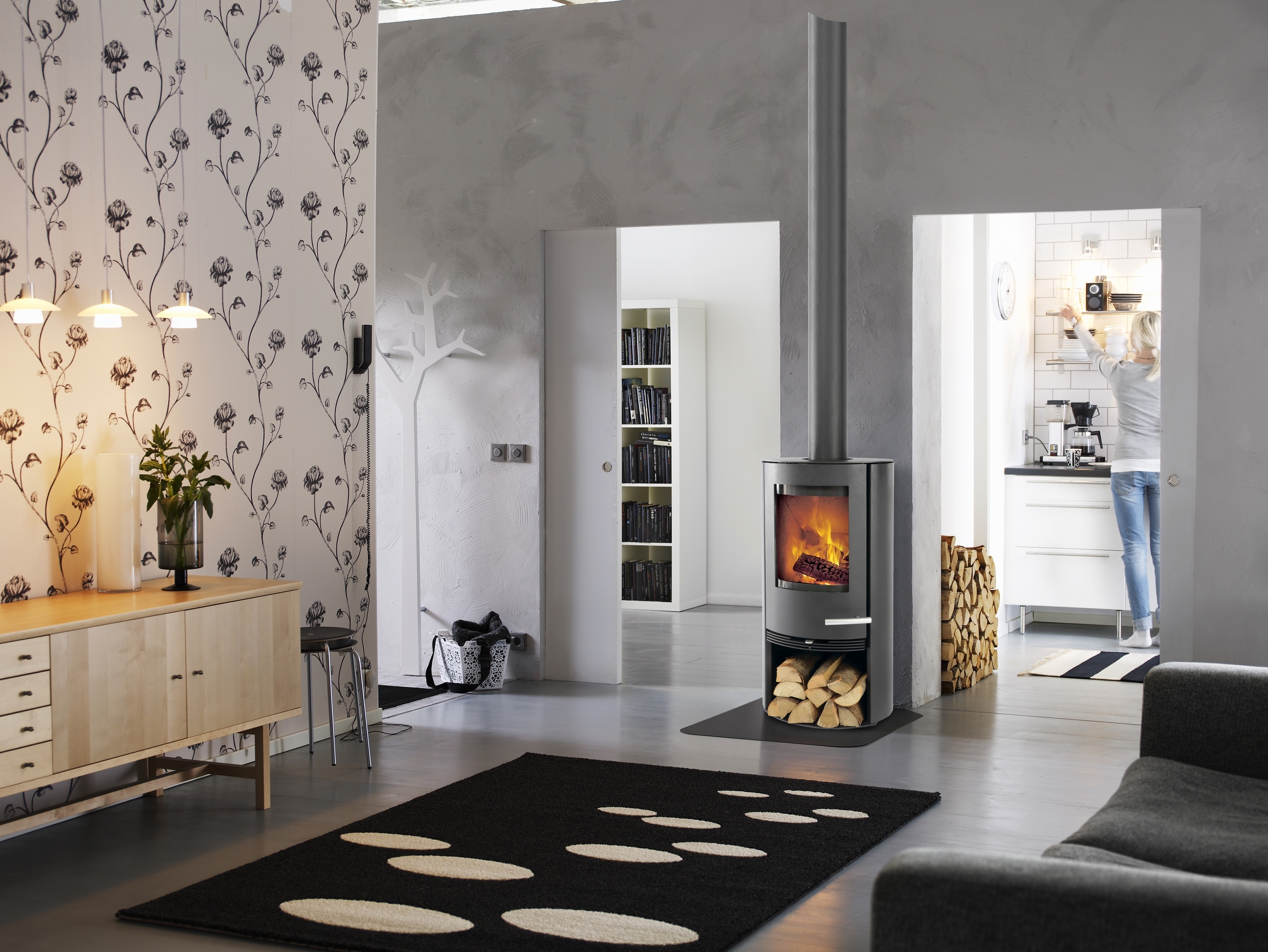 De Thermatech TT20R heeft zich bewezen als een van de meest populaire modellen uit de TT20-serie. De elliptische vorm met gebogen stalen zijpanelen creëert een rustige en harmonieuze uitstraling die zich aanpast aan verschillende interieurstijlen. Door het doordachte ontwerp kun je de kachel flexibel plaatsen - zowel tegen een vlakke wand als in een hoekopstelling.